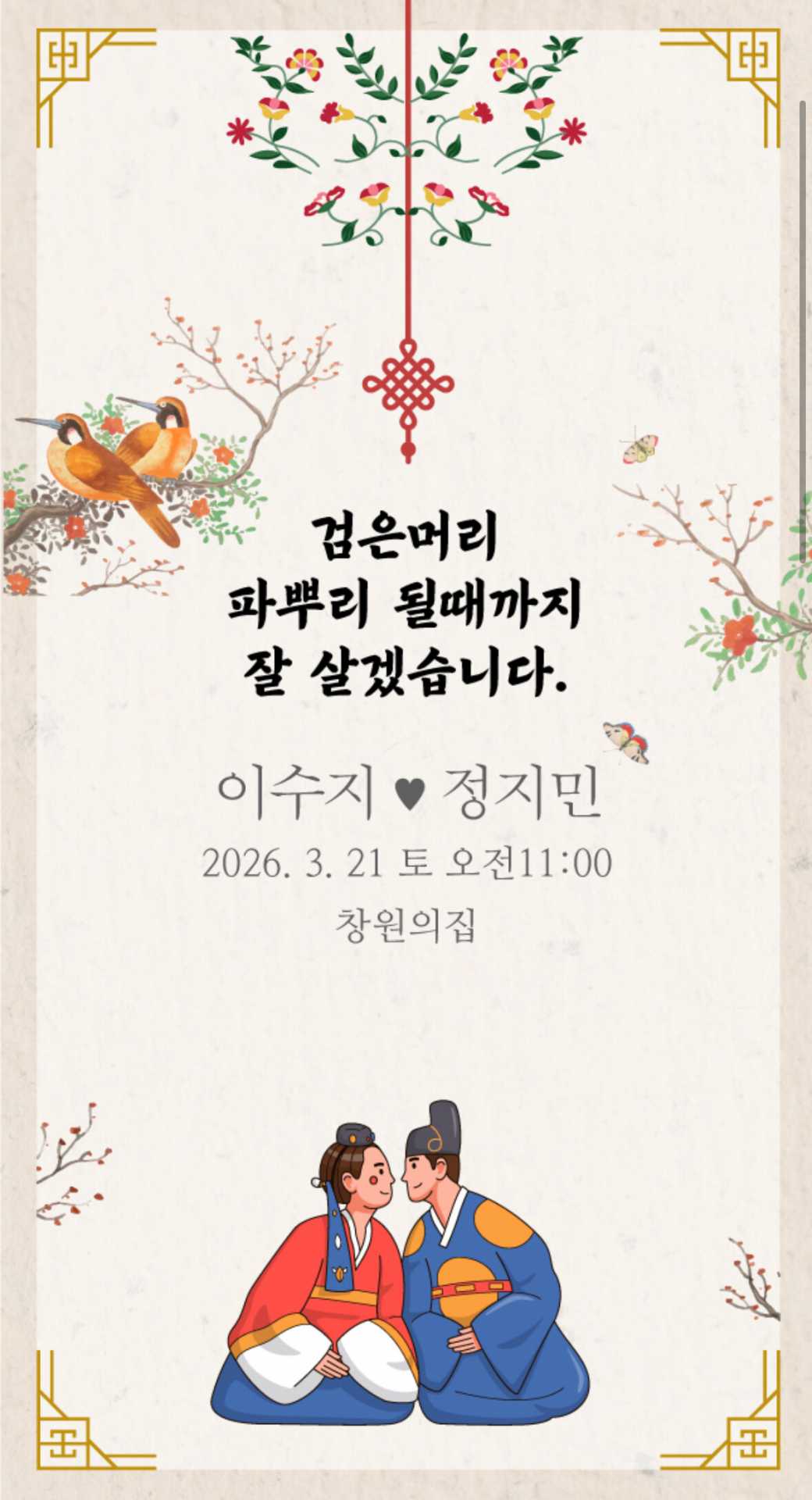 · 청첩장 워터마크 제거는 최대 1인 2매 가능하며 워터마크 제거 후 100일 이후 청첩장은 삭제됩니다.